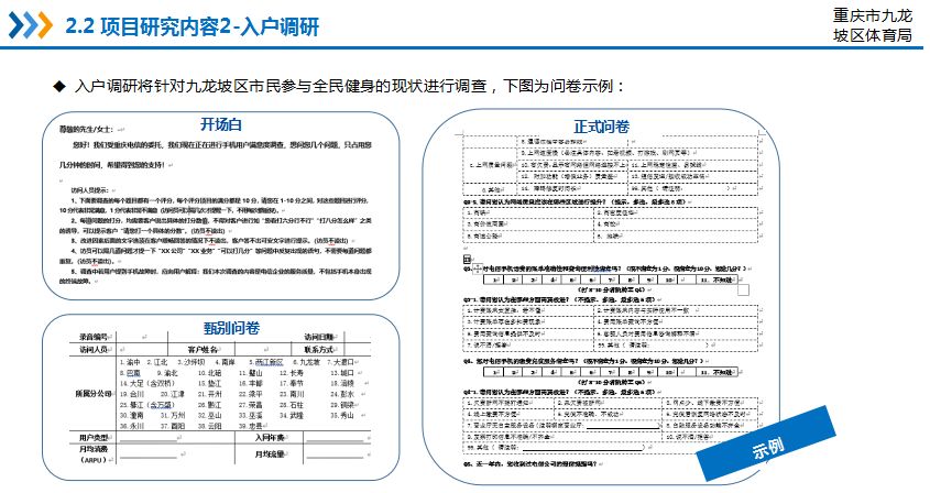 九龍坡區全民健身實施計劃(2016-2020年)效果評估及活動狀況調查項目.所屬行業:案例描述: -